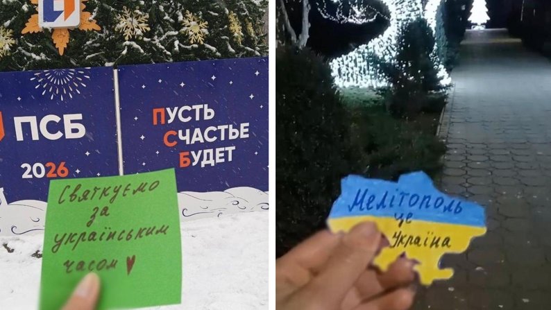Активісти руху опору "Жовта стрічка" з тимчасово окупованого Бердянську та Мелітополя, що на Запоріжжі, передали новорічні вітання українцям.
