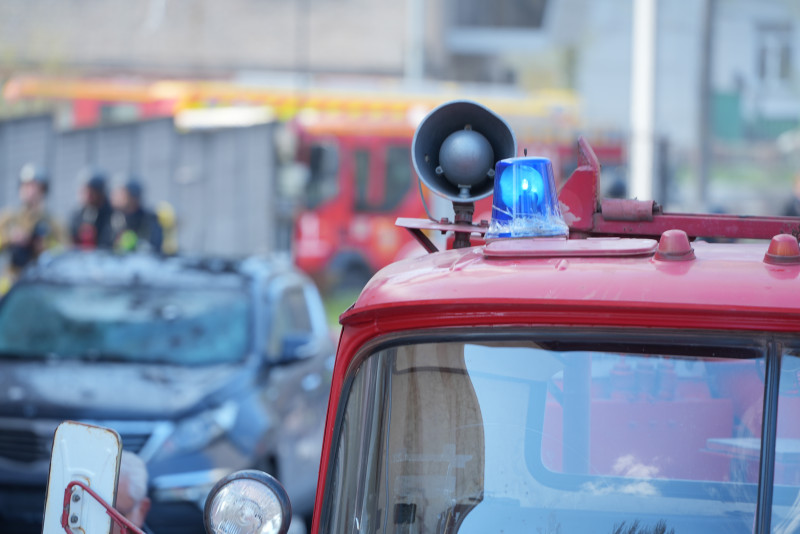 Пожежна автівка на місці російського обстрілу у Запоріжжі, 13 квітня 2026 року. Суспільне Запоріжжя