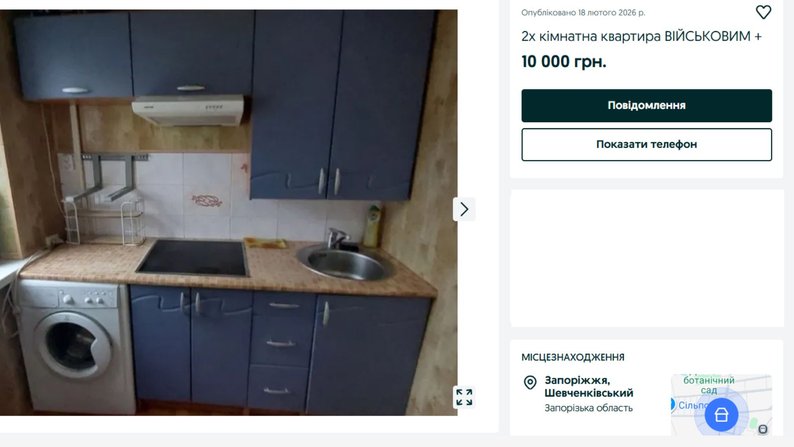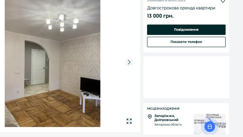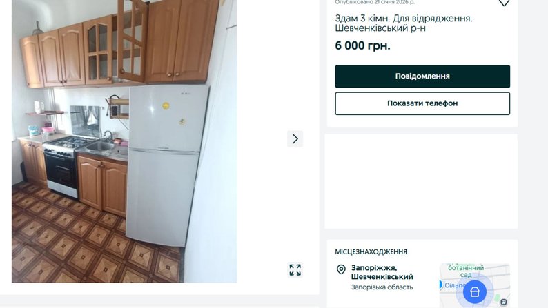 Оголошення оренди житла у Запоріжжі. Скриншот з OLX