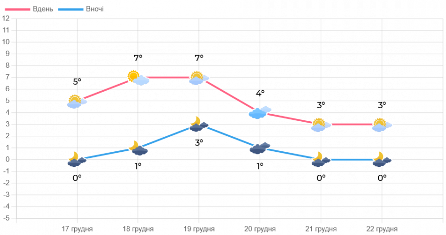 Водночас метеорологи попереджають про майбутні зміни. Орієнтовно, з 26 грудня, в Україні очікується похолодання. Денні температури опустяться до невеликих мінусових значень, а вночі термометри можуть показувати від -5 до -11 градусів. Таким чином, наступний тиждень стане останнім періодом комфортної зимової погоди перед справжніми морозами.