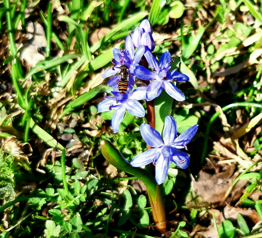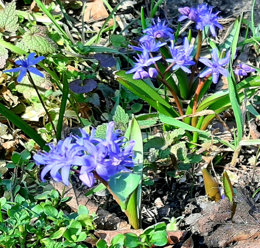 Серед тих, що вже почали розквітати, — ніжні блакитні проліски. Ці невеликі квіти одними з перших з’являються після зими й часто пробиваються просто крізь торішнє листя, нагадуючи, що весна вже близько.