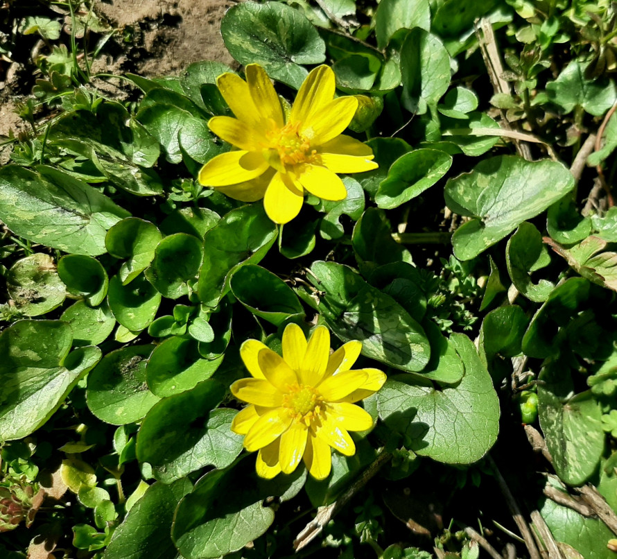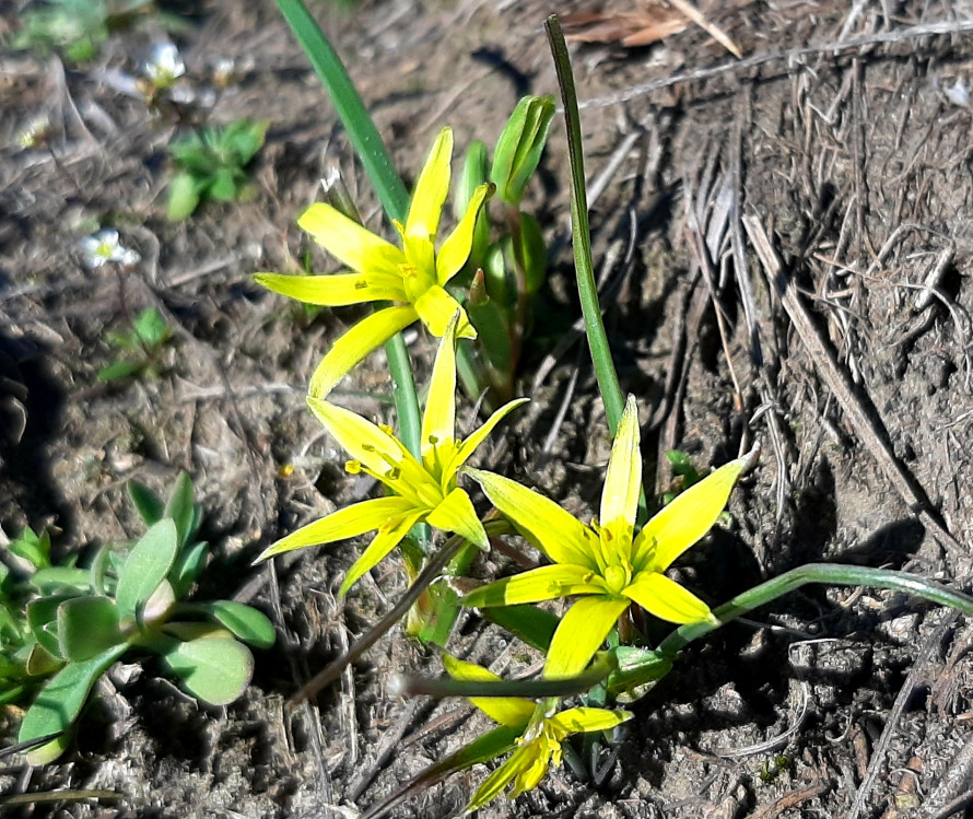 Ще один первоцвіт — жовті зірочки, невисокі рослини з характерними зірчастими квітками. Вони часто ростуть групами, створюючи на галявинах маленькі «сузір’я».