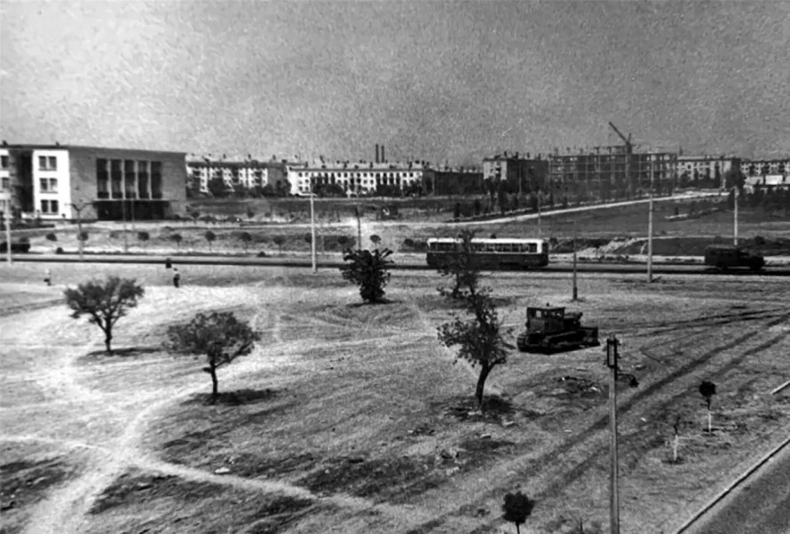 1964. Незвичний для сучасних запоріжців вигляд Центрального бульвару та Фестивальної площі. Ліворуч – Будинок політпросвіти.