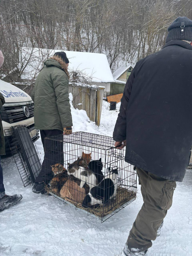 4 лютого на світанку разом з UAnimals та небайдужими людьми вони почали довготривалу і нелегку евакуацію в декілька етапів. Містечко (селише. — Ред.) перебуває під постійними обстрілами і великі авто та вантажівки не можуть заїхати в містечко, так як можуть бути безпосередньою ціллю для дронів. Вивозили тварин етапами, головне авто чекало за містом в безпечному місці. Це була не легка евакуація».
