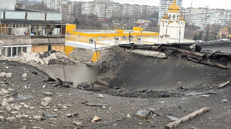 Пошкоджена покрівля ТЦ у Запоріжжі внаслідок обстрілу РФ 24 березня 2026 року. Суспільне Запоріжжя/Олена Лисенко