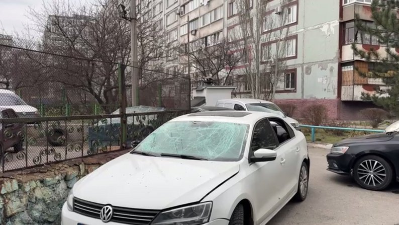 Розбите скло легковика внаслідок російського обстрілу Запоріжжя, 24 березня 2026 року. Суспільне Запоріжжя/Поліна Мороз