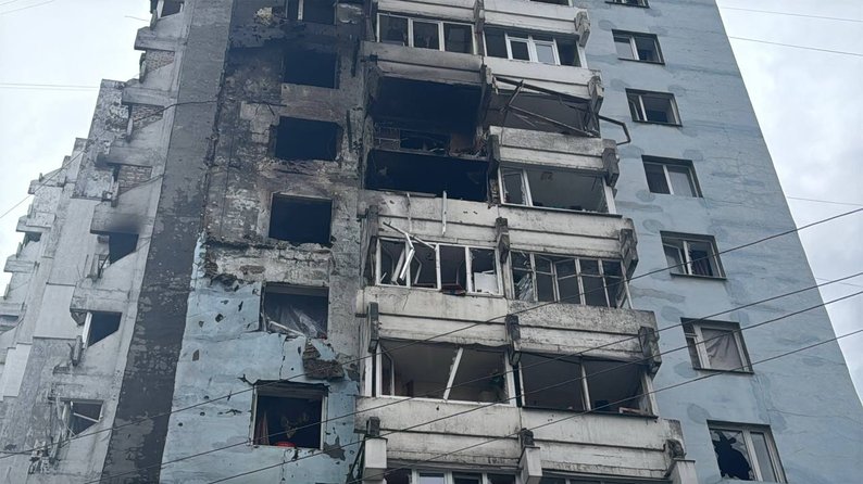Уночі російський дрон влучив у ще одну багатоповерхівку в іншого району міста. Від атак окупантів разом із маленькою донькою у коридорі ховалася переселенка Юлія: