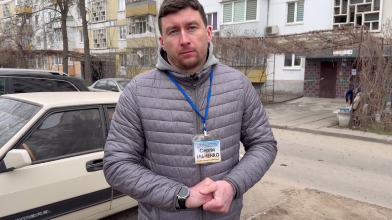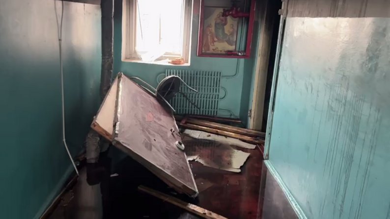 "Шафа, підлога, паркет, двері, вікна на балконі, балконні рами, вікна на кухні, в спальні, в залі, холодильник завалило. Зверху там текла батарея, коли рвонуло, трубу перебило. Просто там стояк перекрити і все. Мене викинуло з ліжка. І я почав тушити, воно ж загорілося, а в мене вогнегасник був автомобільний і вода у флягах он запас. Потушив, а тут уже і пожежники. Я був у шоці, в мене кров йшла. Буду тут. А що ж, зараз якщо кину, то взагалі все потече, ну треба оце все прибирати. Воно ж почне пріти".