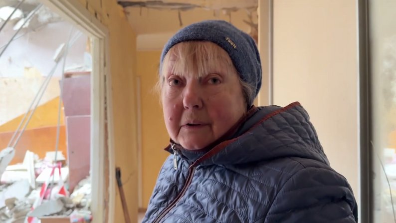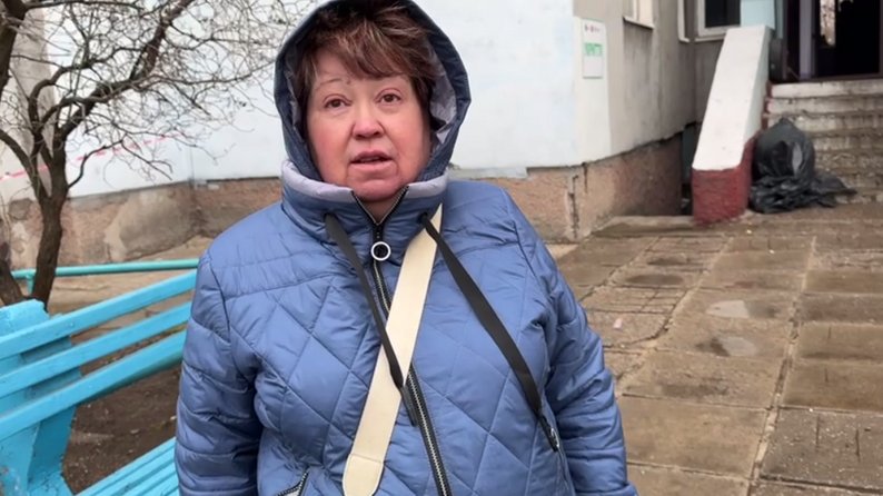 "Нічого не бачили, нічого не чули. Коли вже донька вийшла з ванни почала кричати, я прокинулась. Нікуди не бігли, так і стояли в ступорі. Від такого влучання не побігти. Цілий дрон лежав у квартирі. Його забрали. Ніяких емоцій, шкода і все. Розплачуся ввечері, коли спати не буде куди вкладатися. Ми тут з 1977 року. Все життя наше тут. Комісія ходила, дивилася, сказали, що будуть ремонтувати, напевно їм відніше, що будуть робити".