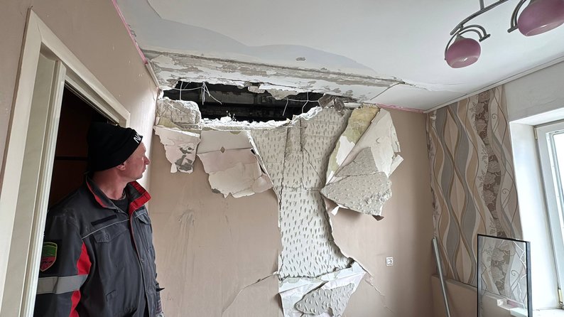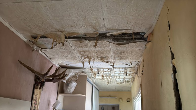 Російський безпілотник влучив у дах над квартирою Тетяни. Через це обвалилися бетонні конструкції, а стіни в її оселі пішли тріщинами: