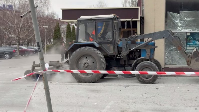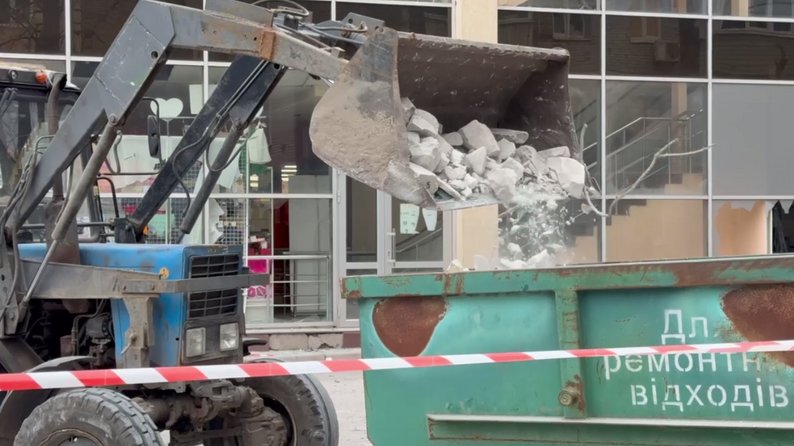 Нині на місці працюють комунальники та працівники ТЦ, прибирають наслідки російського обстрілу.