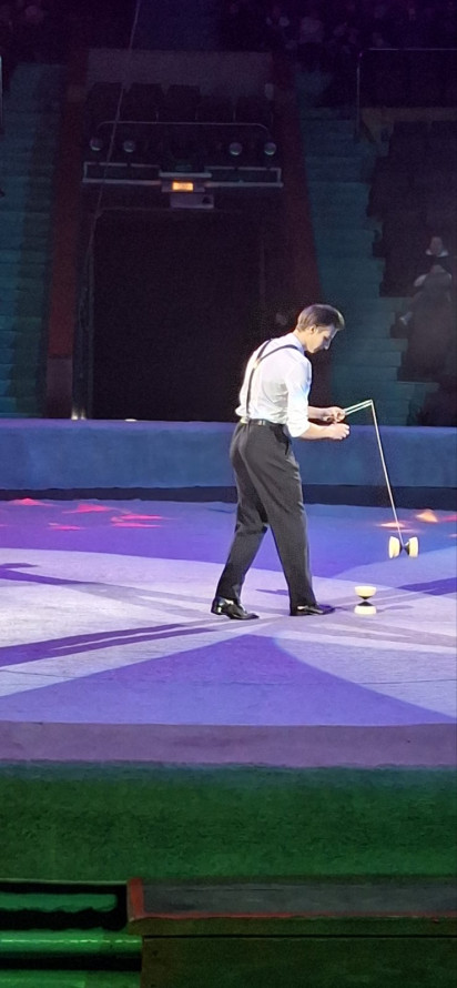 Зокрема, номер із діаболо демонструє майстерність роботи зі спеціальним реквізитом у вигляді котушки, яку розкручують на мотузці між паличками, підкидають у повітря та ловлять, виконуючи складні трюки.