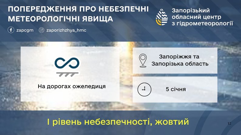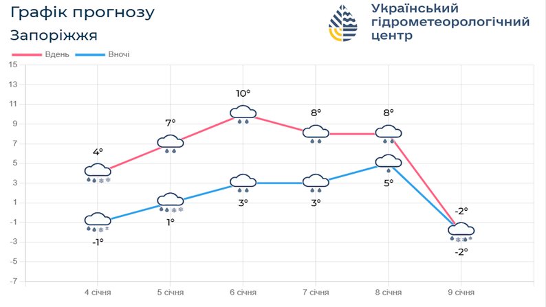 Про це сьогодні, 4 січня, повідомили в Запорізькому обласному центрі з гідрометеорології.