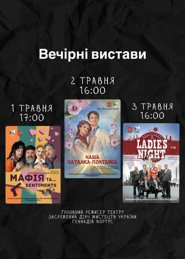 — 2 травня о 16.00 — вистава «Наша Наталка-Полтавка».