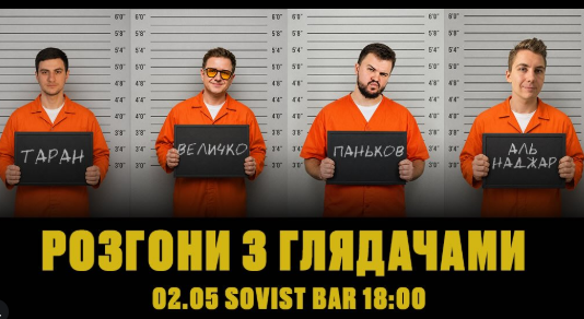 — 2 травня о 18.00 — «Розгони з глядачами» від Запорізького стендап-клубу «PROSPEKT».