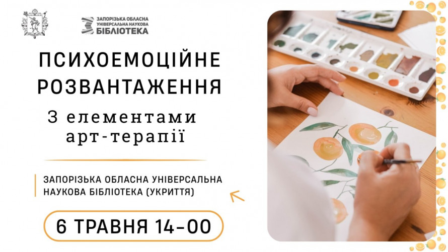 — 6 травня о 14.00 — 6 травня — психоемоційне розвантаження з елементами арт-терапії від БО БФ «Посмішка ЮА». У програмі: легкі арт-вправи, робота з кольором та можливість м’яко пропрацювати свій емоційний стан