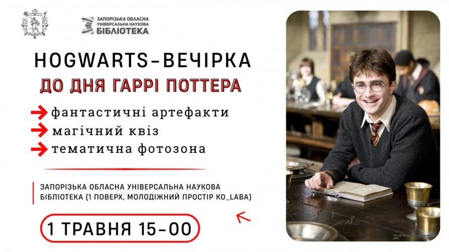 — 1 травня о 15.00 — «Гоґвортс-вечірка». Дрес-код: елементи одягу твого факультету, мантії або магічні аксесуари вітаються.