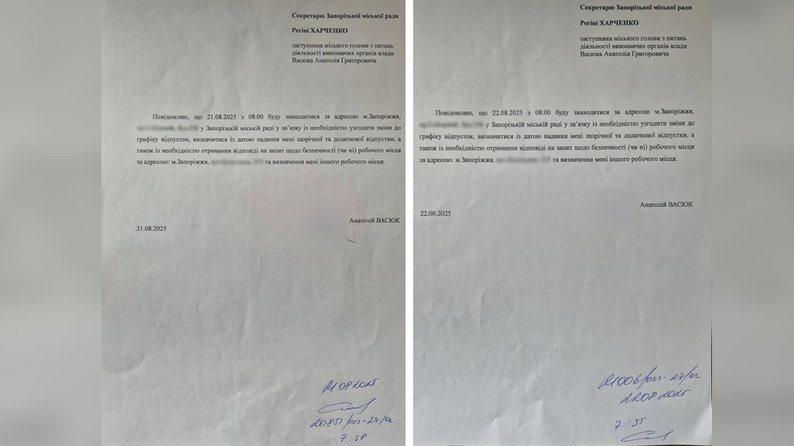Повідомлення Анатолія Васюка про перебування його в робочий час у приміщенні ЗМР 21 та 22 серпня 2025 року, зареєстроване у канцелярії міськради. Facebook/ Анатолій Васюк
