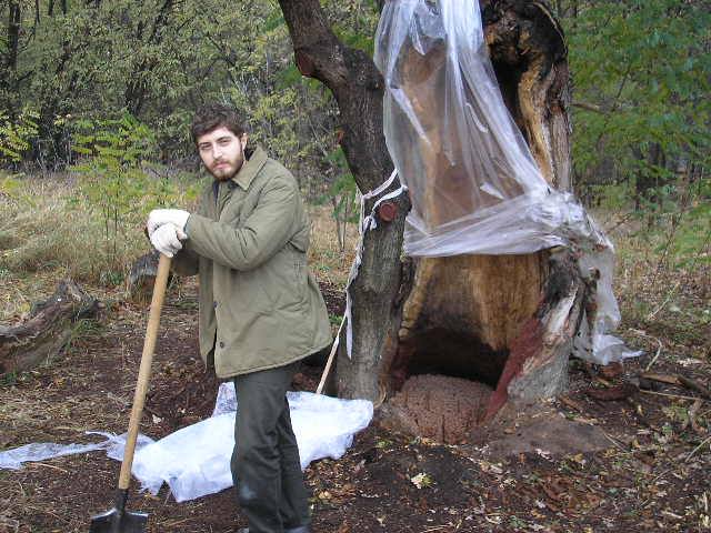 «2005 року ми виявили дуб, який нас дуже здивував. Нам усім було невтямки як дуб, серцевина якого була знищена більш ніж на 80 відсотків, може жити, а точніше існувати тримаючись буквально на одній тільки корі. Не додавало оптимізму і те, що в його центрі хтось явно не від великого розуму не раз споруджував багаття.