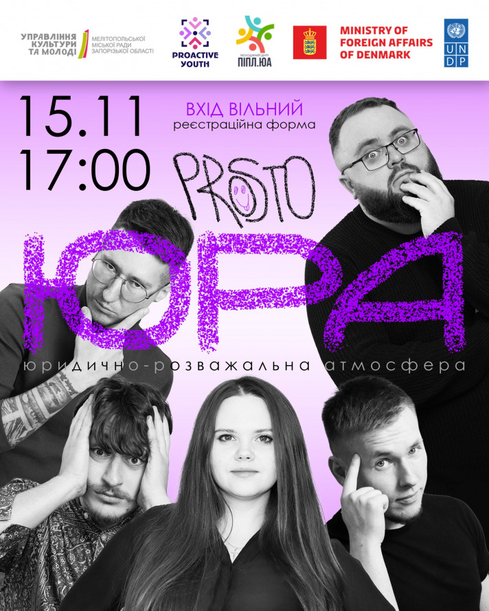 — 15 листопада о 17:00 — стендап-лекція «ЮРА: Юридично. Розважально. Атмосферно» для всіх, хто любить гумор і не боїться, у Молодіжному центрі «Піпл. юа».