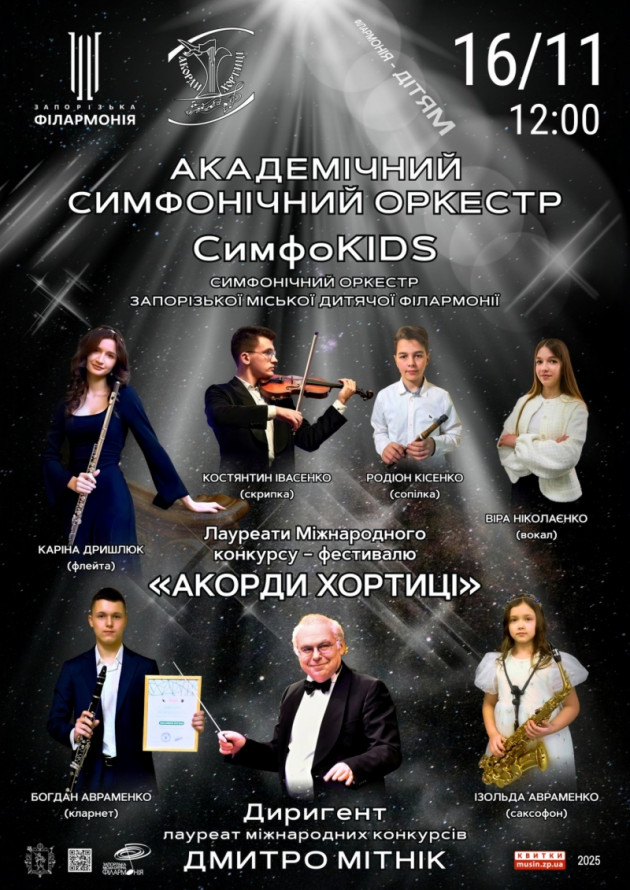 — 16 листопада 12.00 — концерт «Академічний симфонічний оркестр. «СимфоKIDS». Лауреати Міжнародного конкурсу-фестивалю «Акорди Хортиці».