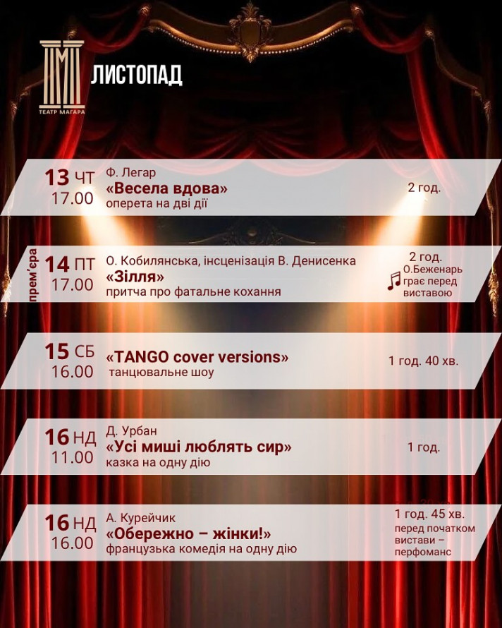 — 13 листопада о 17.00 — оперета «Весела вдова».