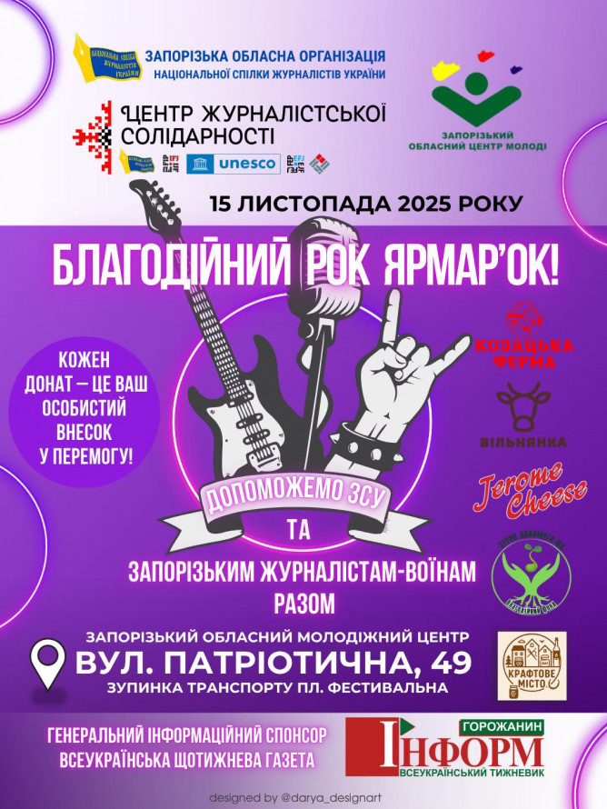 — 15 листопада — благодійний рок-ярмарок, у Запорізькому обласному молодіжному центрі.
