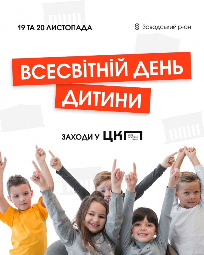 — 20 листопада, 16.00–18.00 — казкові квести, виставка дитячих малюнків і майстер-класи від творчих студій у ЦКП «Молодіжний» (вул. Мирослава Симчича, 53). Вхід вільний.