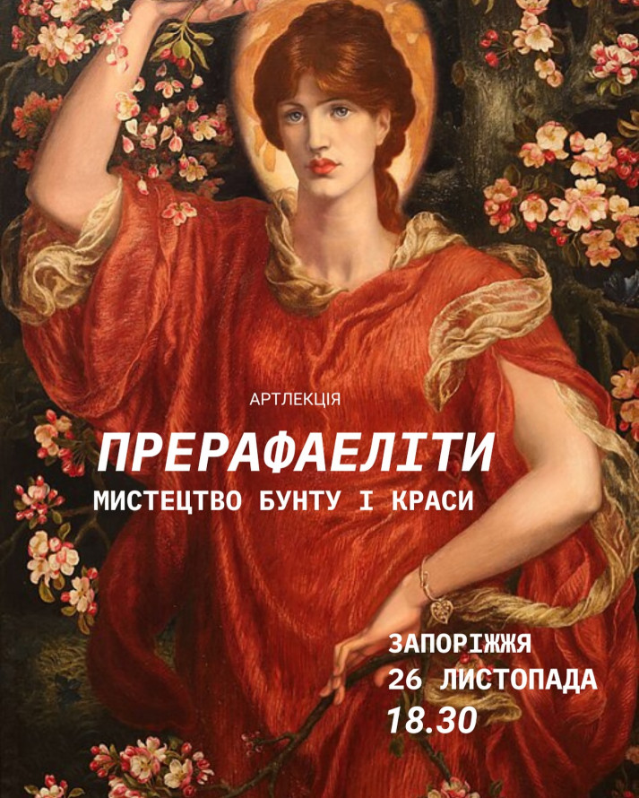 — 26 листопада о 18.30 — лекція «Прерафаеліти. Мистецтво бунту та краси» від кульутрологині Льони Радченко. Деталі та реєстрація в direct лекторки.