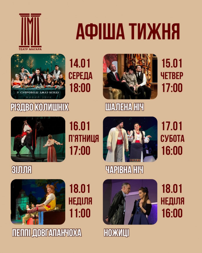 — 17 січня о 16.00 — театралізований концерт «Чарівна ніч».