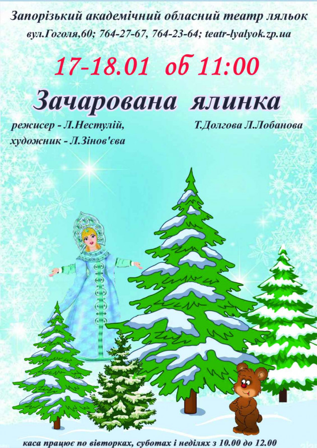 — 17, 18 січня об 11.00 — казка «Зачарована ялинка».