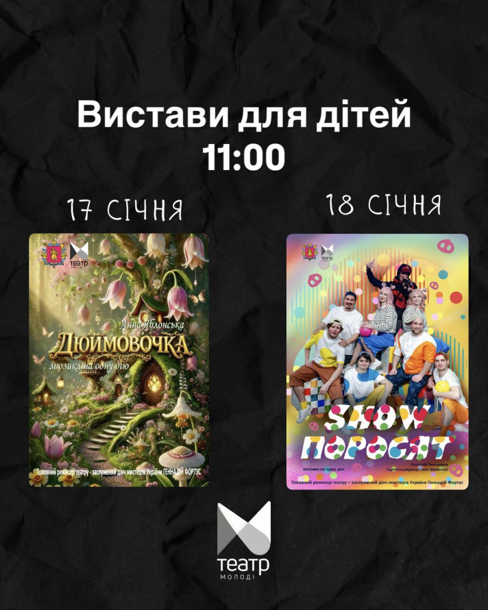 — 17 січня о 14.00 — драма-феєрія «Якось у морському» для родинного перегляду, бажано від 7 років.