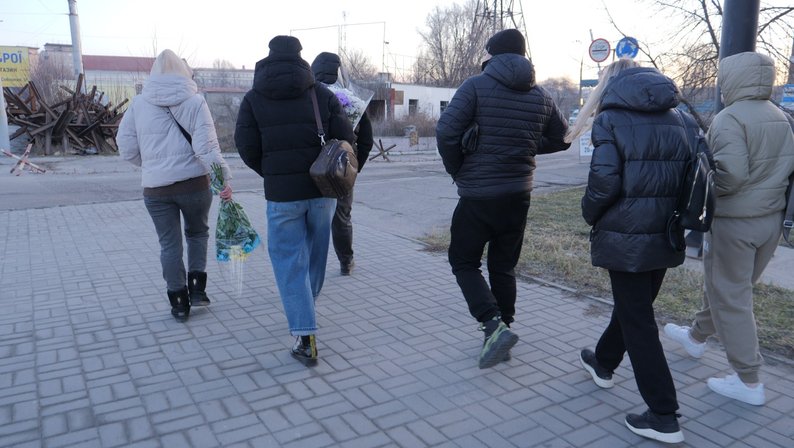 Дружина та друзі йдуть зустрічати Олега Павшенка, 13 березня 2026 року. Суспільне Запоріжжя