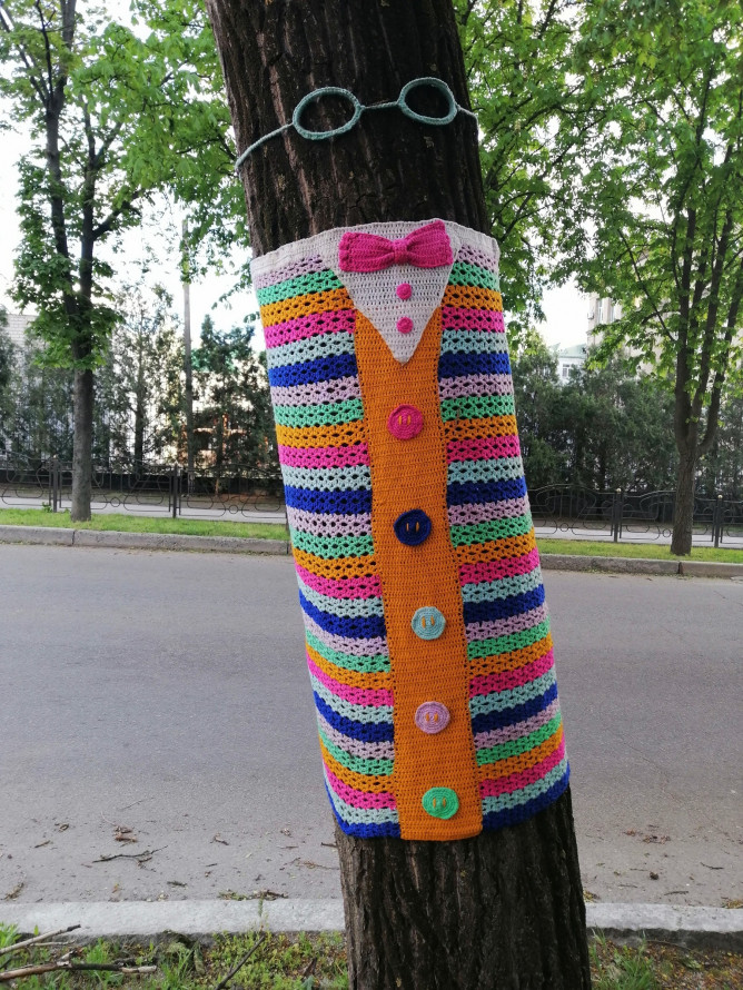 У Запоріжжі на розі вулиць Фортечної і Залізничної є алея дерев у яскравому в’язаному «одязі» яка поступово розростається — рослин у вбранні більшає.