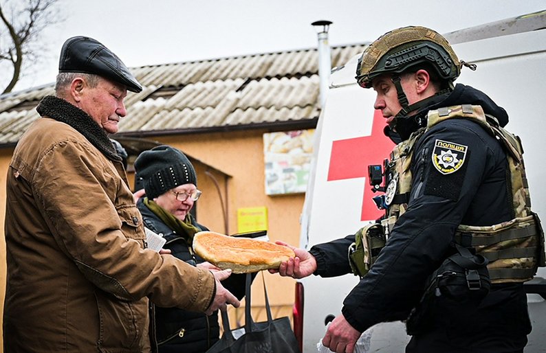Також правоохоронці разом із громадською організацією передали хліб місцевим жителям Юрківки та Таврійського.