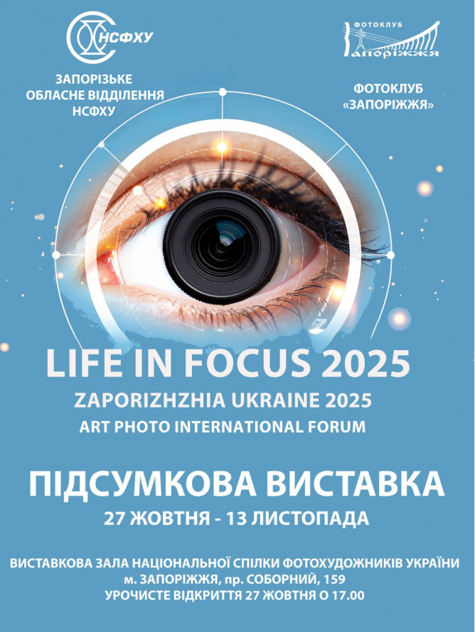 — 27 жовтня о 17.00 — презентація Міжнародної підсумкової виставки-конкурсу «Life in focus 2025».