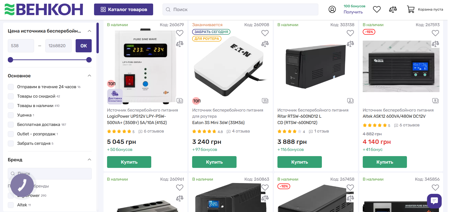 Интернет-магазин техники ВЕНКОН специализируется на оборудовании для стабильного электропитания и формирует ассортимент с учетом реальных задач пользователей: от домашнего рабочего места до серверных и ответственных инженерных систем. Экспертный подход позволяет избежать ошибок при выборе ИБП, которые приводят к перегрузке устройства, недостаточному времени автономии или некорректной работе оборудования.