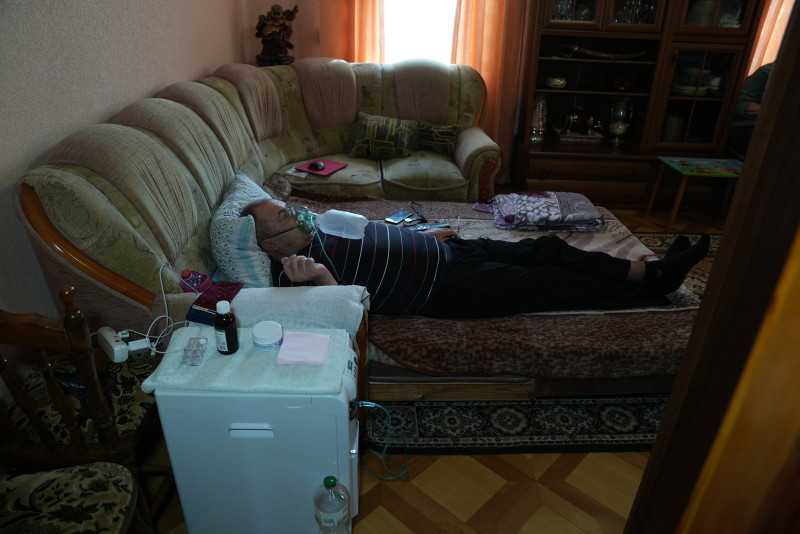 “Він може заснути, а я боюсь, щоб нічого не трапилося. Поки він спить, апарат може зсунутися, маска з’їхати…Тож я постійно за ним наглядаю”.