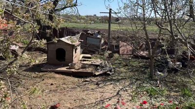 Пошкоддена будка собаки у Комишувасі Запорізької області, 23 квітня 2026 року. Суспільне Запоріжжя
