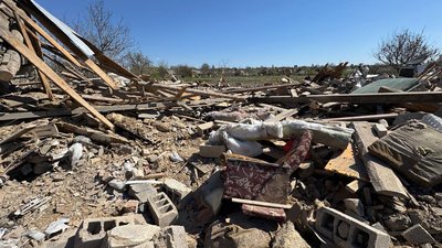 Вранці 23 квітня російські військові атакували керованими авіабомбами Комишуваху Запорізької області. Внаслідок обстрілу загинула 77-річна жінка. У селищі пошкоджені житлові будинки — їхні мешканці намагаються навести лад у понівечених оселях.