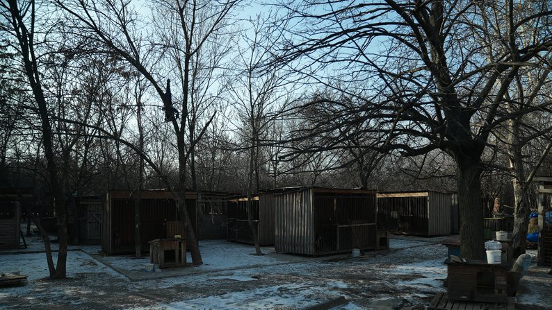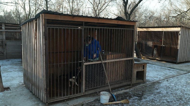 Нині волонтери прибирають територію притулку та відновлюють пошкоджені вольєри. Олександра Жулінська розповідає, тут опікуються чотирилапими, зокрема, і з прифронтових територій. Загалом у притулку їх близько 300.