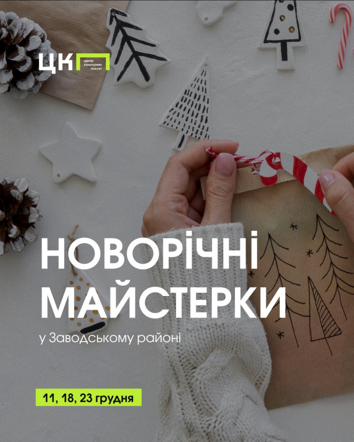 Майстерки проходитимуть на двох локаціях — ЦКП Заводський та ЦКП Молодіжний. Вхід вільний.