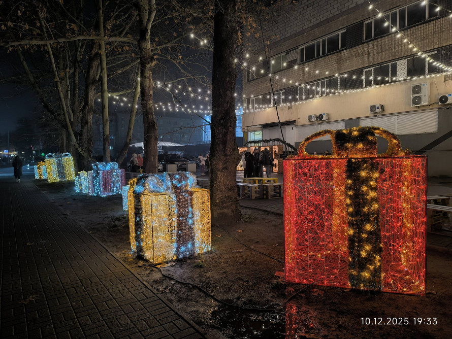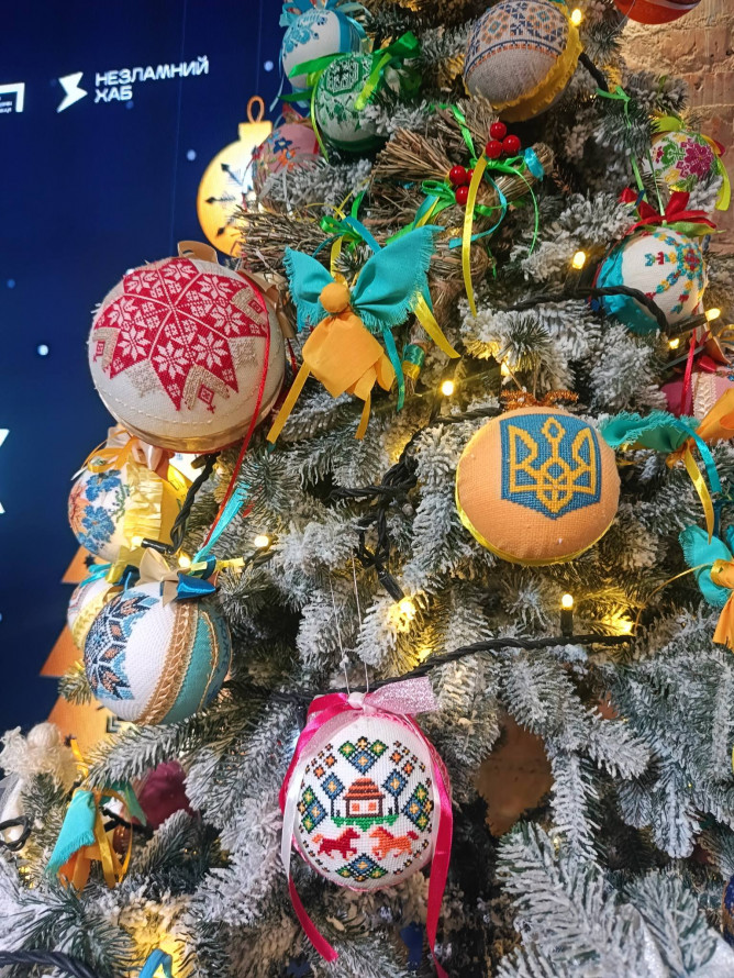 До речі, перед ЦКП «Орбіта» влаштували красиву святкову зону. Незламний хаб в «Орбіті» теж святково прикрашений. Зокрема, там є ялинка, яку прикрасили унікальними вишитими вручну кульками роботи майстринь ГО «Запорозькі берегині».