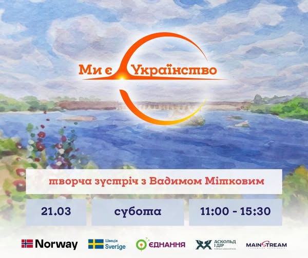 — 21 березня, 11.00 — 15.30 (з перервою) — творча зустріч для дорослих з художником Вадимом Мітковим (Запоріжжя) від ГО «Мейнстрім». Відбудеться майстер-клас з малювання аквареллю виду на Дніпрогес із острова Хортиця. Матеріали для малювання надаються.