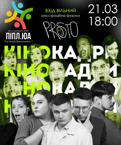 — 21 березня о 18.00 — стендап «Кінокадри» від коміків Простору подій “PROSTO”: гумористичне обговорювання культової стрічки 2000-х, що стала проривом серед пародійних фільмів, «Дуже страшне кіно». 16+.