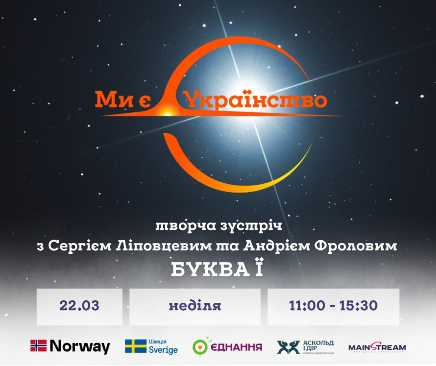 — 22 березня, 11.00 — 15.30 (з перервою) — творча зустріч для дорослих «Буква Ї». Разом із професійним художником Сергієм Ліповцевим (Запоріжжя) і запрошеним гостем Андрієм Фроловим можна буде зануритись в атмосферу, де проза і малюнок переплітаються в одне ціле. Матеріали для малювання надаються.