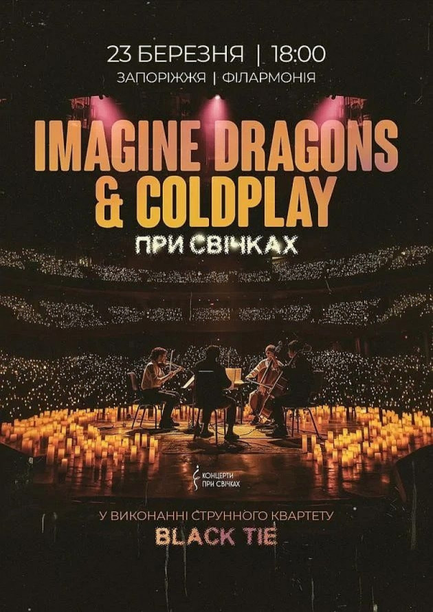 — 23 березня о 18.00 — концерт «IMAGINE DRAGONS&COLDPLAY» при свічках у виконанні струнного квартету «Black Tie».
