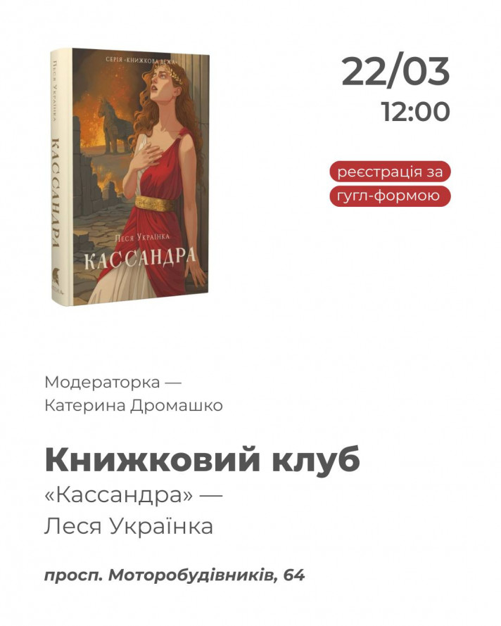 Обов’язкова попередня реєстрація на книжковий клуб 22 березня за посиланням: https://forms.gle/np32S7WbY8RT1fLdA