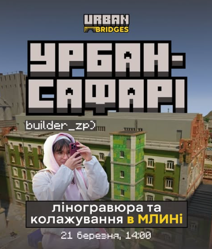— 21 березня о 14.00 — екскурсія «Урбаністичне сафарі» по локації креативна платформа «Млин» (це історична будівля — паровий млин Германа Нібура 1895 року), майстер-класи на вибір та/або затишне обговорення. Від ГО «Молодь онлайн».