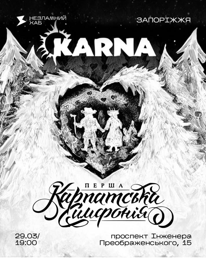 — 29 березня о 19.00 — концерт рок-гурту «KARNA» (Івано-Франківськ): гуцул-метал.